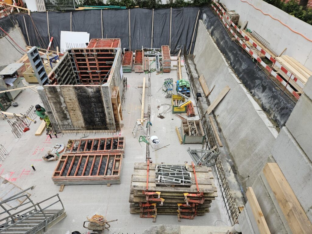 Der Abbruch und der Aushub wurden durch unsere Bereuter Baugrubentechnik AG abgeschlossen, und die Bereuter Bau AG, unser Baumeister, hat bereits die Bodenplatte betoniert.