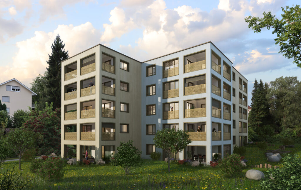 Ab Frühling 2026 entstehen 19 moderne Eigentumswohnungen mit 1.5 bis 4.5 Zimmern. Jede Wohnung verfügt über einen privaten Aussenbereich. Rückseitig bietet die Spiel- und Aufenthaltsfläche viel Raum für Begegnung: das grüne Herz der Anlage 🌿